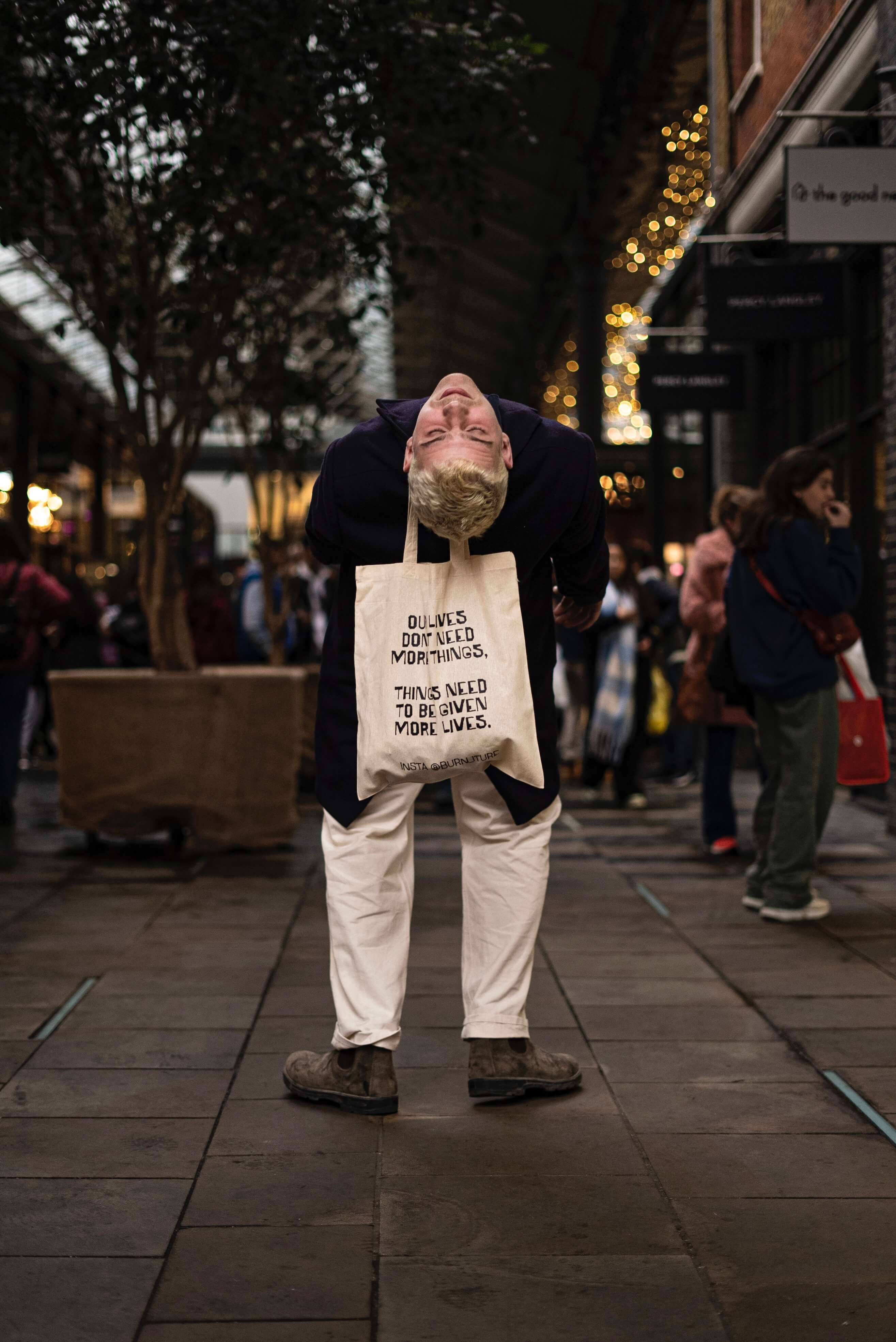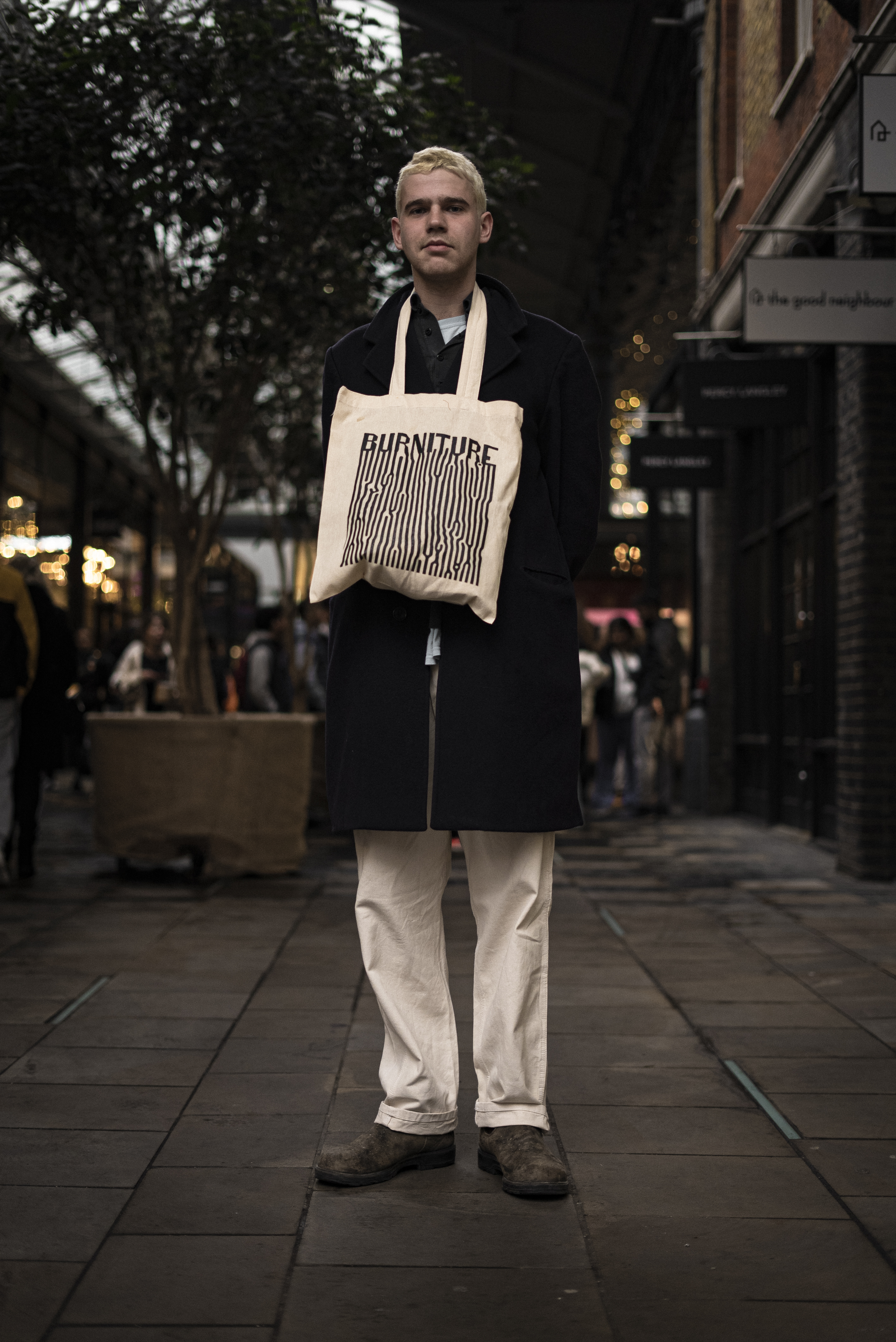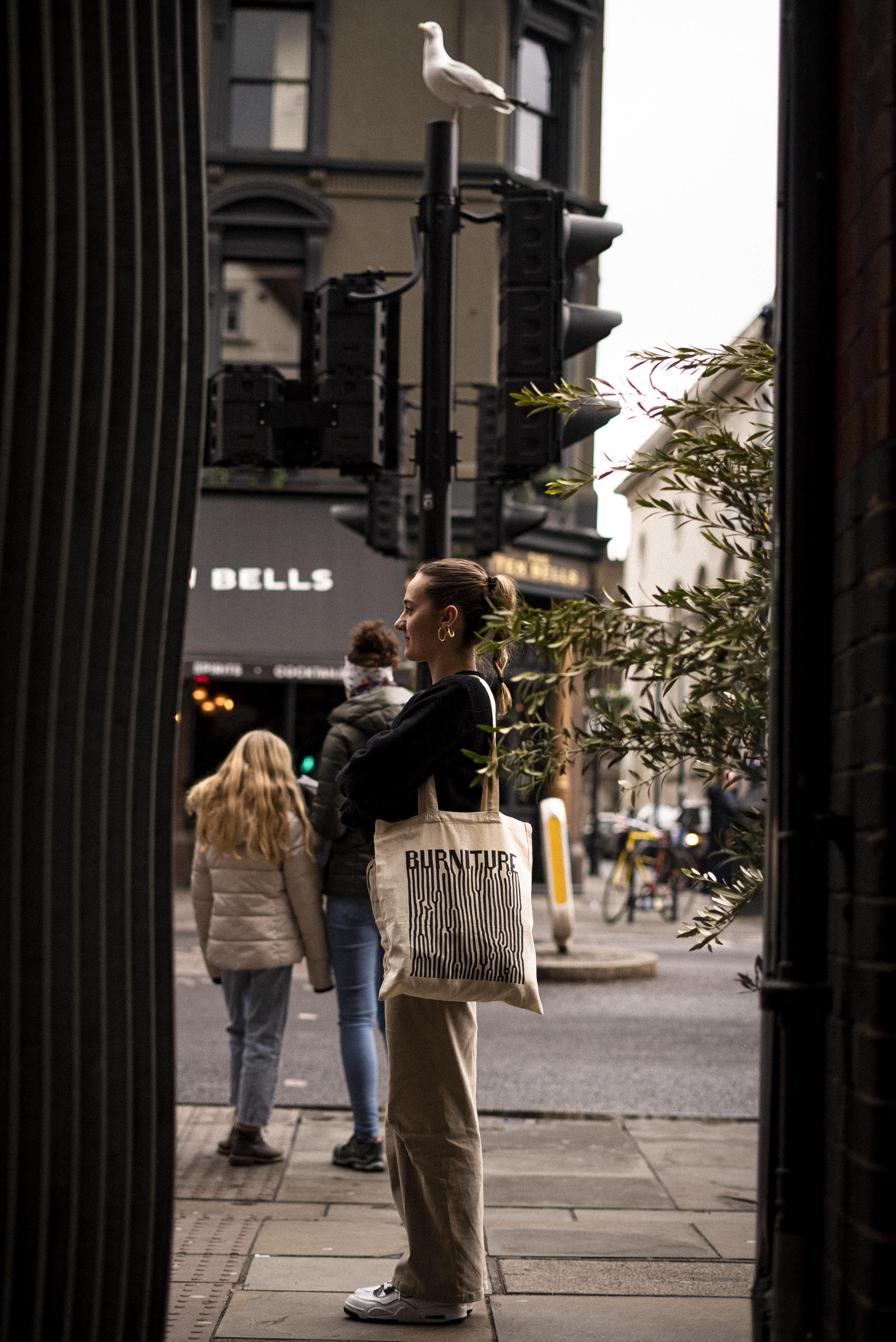 I screen-printed Burniture tote bags onto 100% recycled cotton, these were then distributed at a sustainable pop-up in Spitalfields, London. This meant that Burniture’s message began walking around Shoreditch, gaining traction to our socials and spreading our ethos.